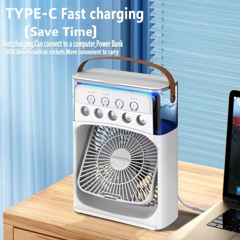 Ne laissez plus la chaleur gâcher vos journées. Ce ventilateur portable 3-en-1 rafraîchit, humidifie et ventile votre espace personnel. Profitez d'une brise agréable, d'une douce lumière LED et d'un confort sur mesure, où que vous soyez.